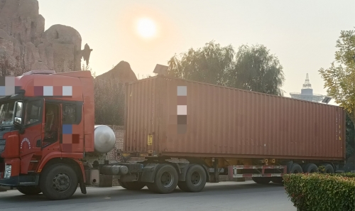 定制款烘干量8000公斤的移動糧食烘干機等待客戶提走